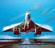 Jetzt stelle ich mir das Ganze in der Concorde vor: eine Klientel, die eigentlich Silberbesteck gewohnt ist und auch keine Zeit hatte, sich 'mental' auf die veränderte Situation einzustellen. Jegliche Erfahrung mit dem Werkstoff Plastik wird erst auf dem ohnehin schon kurzen Flug nach New York gemacht. Keine Chance, den Flug zu genießen, sämtliche Sitzreihen sind mit dem Nachordern von Werkzeug beschäftigt und die Crew steht vor einem ernstzunehmenden Versorgungsproblem. Die reinste Materialschlacht. Unmutsäußerungen von Bug bis Heck. Im Mythos grummelt's.