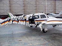 Dieses Foto ist mir neulich bei der Lektüre des aerokuriers wieder über den Weg gelaufen, zum Thema 'Unfallanalyse'. Was war der Hintergrund zu diesem Foto? Auf dem Flugplatz Parafield in Australien macht sich eine Piper Saratoga selbstständig und zersäbelt auf ihrer Irrfahrt fünf parkende Flugzeuge.