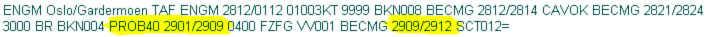 Oslo Gardemoen expandiert... ...den Kalender. Dort gabs im TAF mit 40% Wahrscheinlichkeit eine Vorhersage für den 29.02.2011...