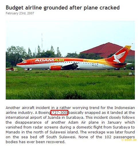 Ein neues Boeing-Muster... ...gleich schon wieder kaputt. Der Journalist erfand diese 737-300.