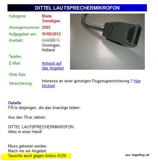 Hoffentlich fliegt die Lizenz... ... nicht weg, schließlich ist sie ja motorbetrieben, wie das Referat Luftverkehr des Landes Rheinland-Pfalz mit geballter Sachkunde festgestellt hat ...