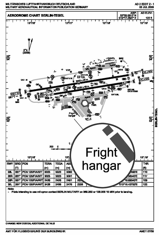 Zum Fürchten ... ... ist offenbar ein Hangar in Tegel (EDDT). Jedenfalls lässt das die Airport Map der MIL-AIP vermuten...