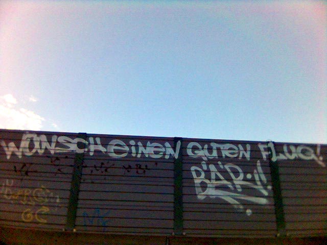 Ein freundlicher Sprayer... ... grüßt hier am Düsseldorfer Flughafen! Oder ob er jemand bestimmtes meinte...?