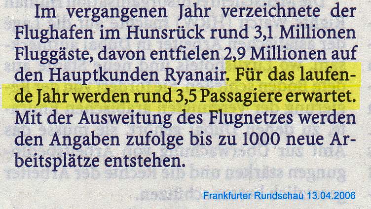 Dramatischer Rückgang... ... der Passagierzahlen für den Flughafen Hahn... Aber dafür rund 290 Mitarbeiter pro Fluggast...