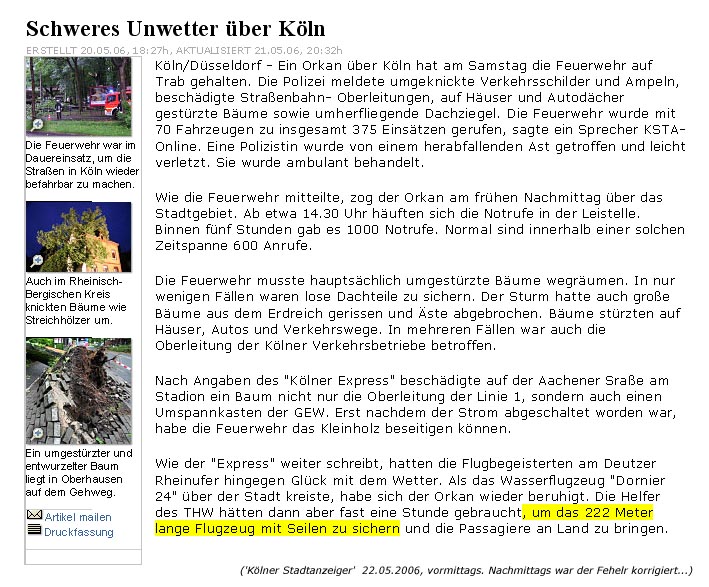 Gewitter macht das Flugzeug lang ... Jedenfalls für den 'Kölner Stadtanzeiger...!
