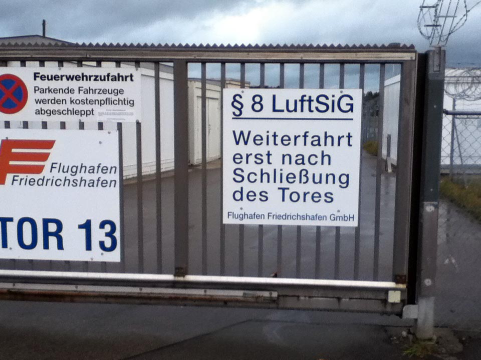Durchs Tor brettern...? ...soll man wohl amFlughafen Friedrichshafen. Oder wie... oder was...?