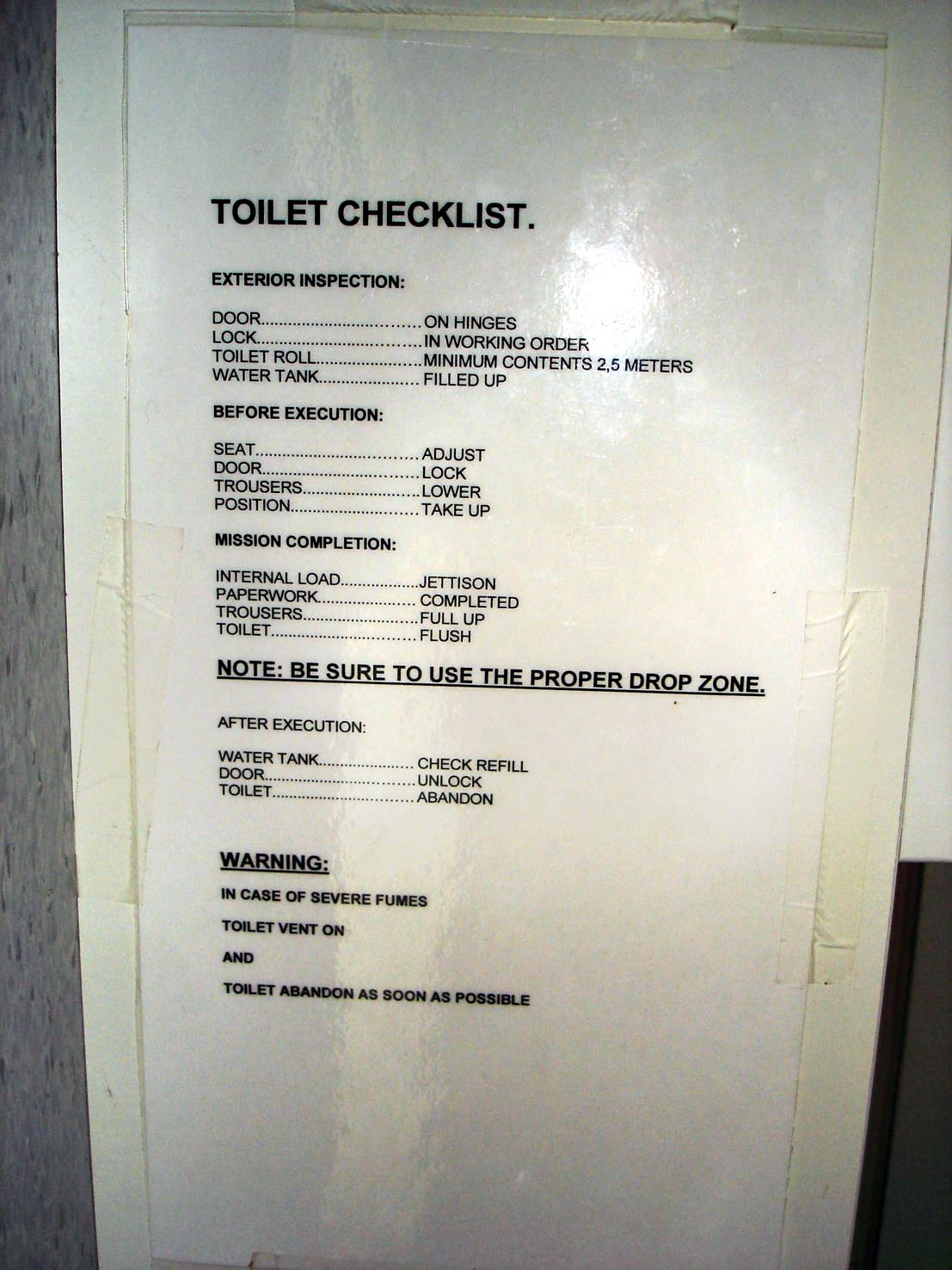 Emergency Checklist ... ... für Piloten auf der Flugplatztoilette von Aero/DK. ;-)