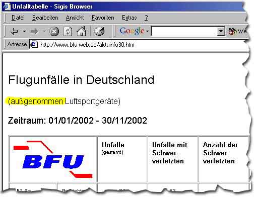 Hoffentlich... ...werden die Flugunfälle sorgfältiger geprüft, als die eigene Website...